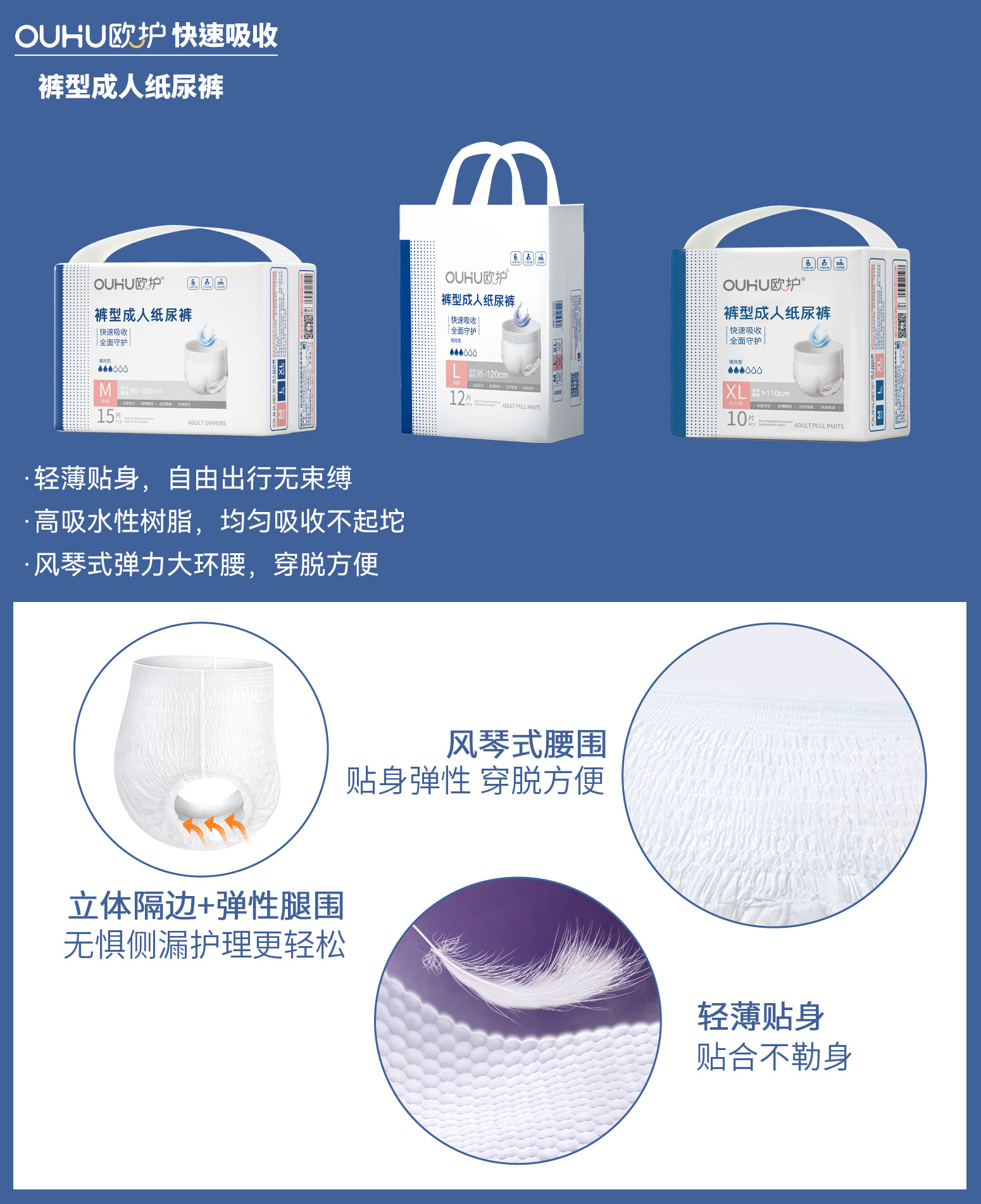 描述:·轻薄贴身,自由出行无束缚 ·高吸水性树脂,均匀吸收不起坨 ·风琴式弹力大环腰,穿脱方便